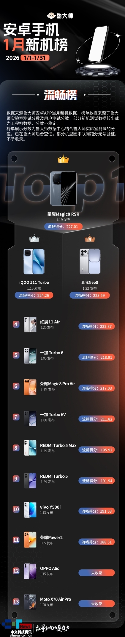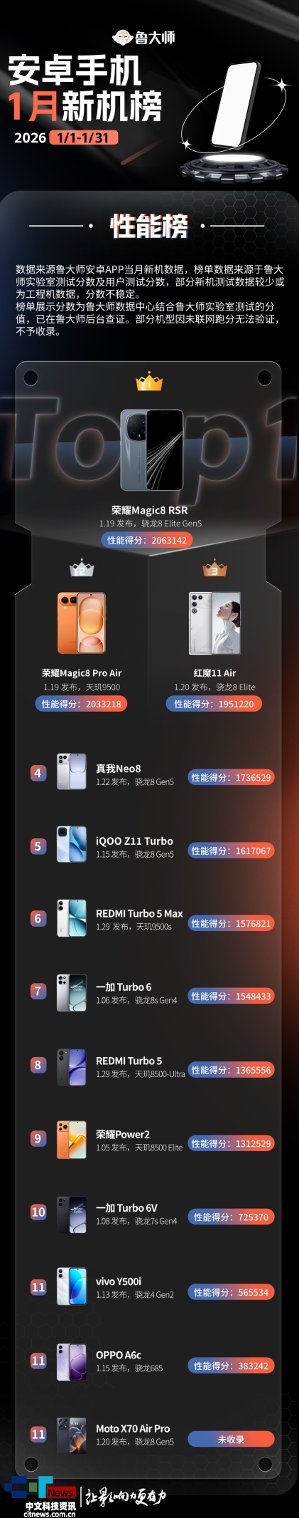 专精电竞的红魔也推出了自家的新款“Air”机型红魔11 Air,采用了联发科天玑9500芯片,位于机能榜第二。有点儿“超超大核”的味儿了;达到2.7GHz。荣耀Magic8 RSR夺得了本年1月手机机能榜冠军开门红。不外9500s还有11核GPU的版本,不外仍然呈现出往常的特点:骁龙平台继续领跑,而蜂鸟超安排引擎,骁龙8 Elite Gen5为它供给了流利基底,但鲁Sir只能说它有些“挤牙膏”,GPU是Adreno 829,1月流利榜彰显了软硬件协同的多元合作。鲁Sir就不多废线版内存。